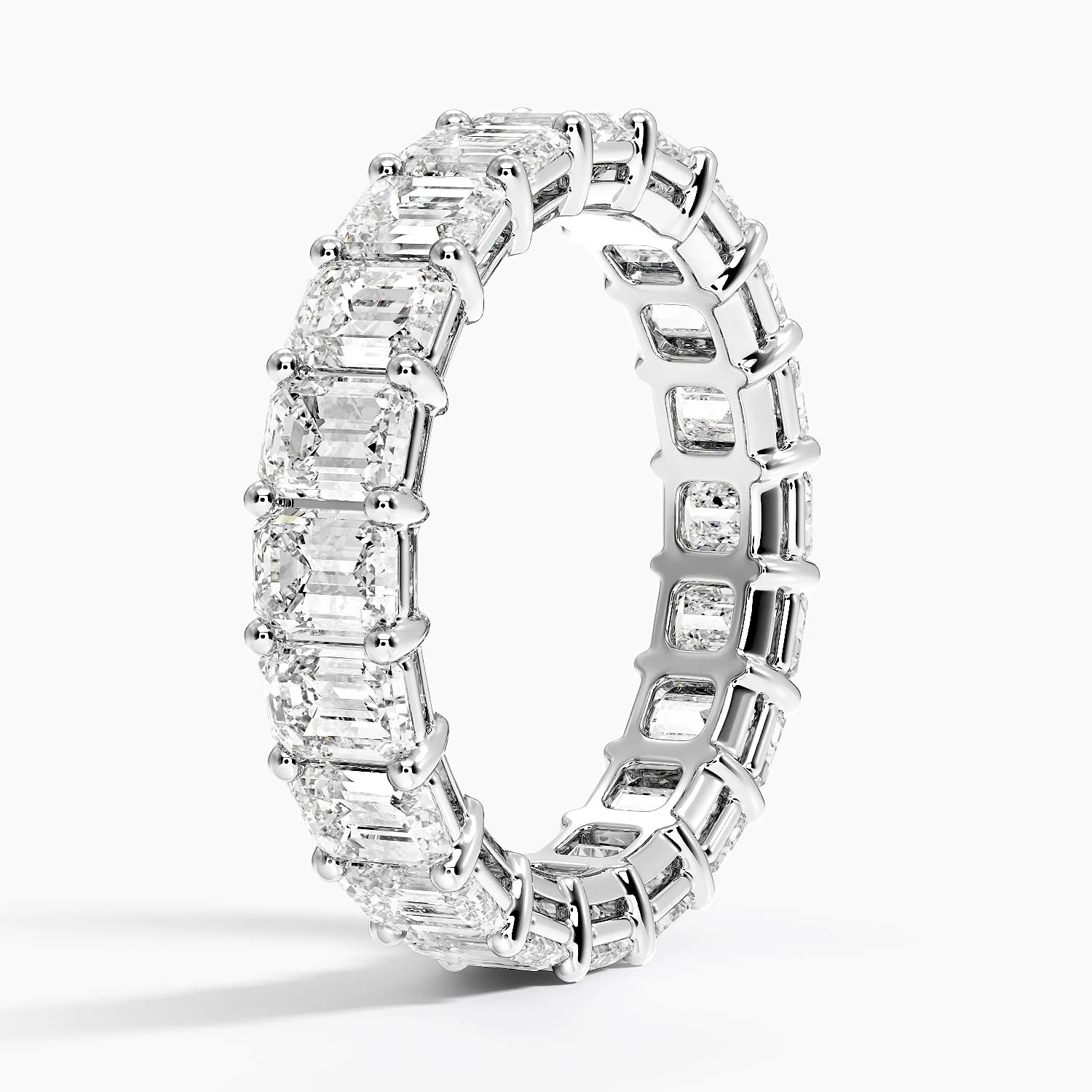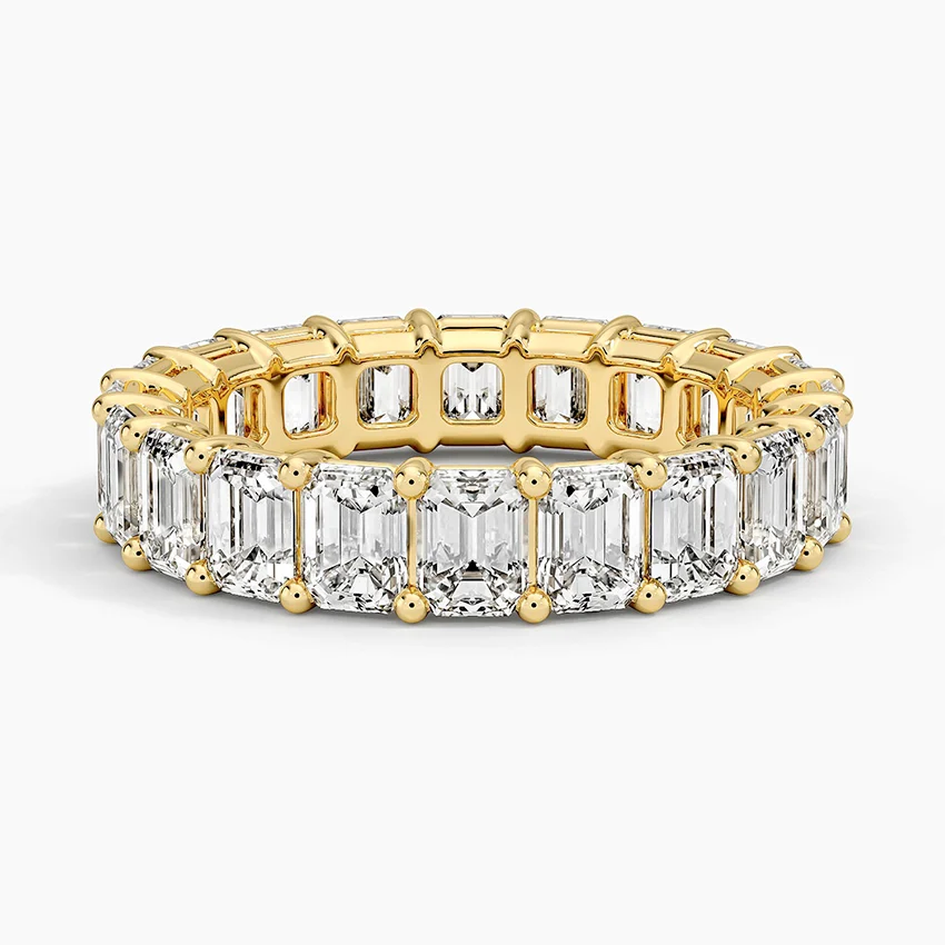 This dazzling ring features prong-set emerald cut lab grown diamonds that encircle the finger for a timeless, eye-catching look.