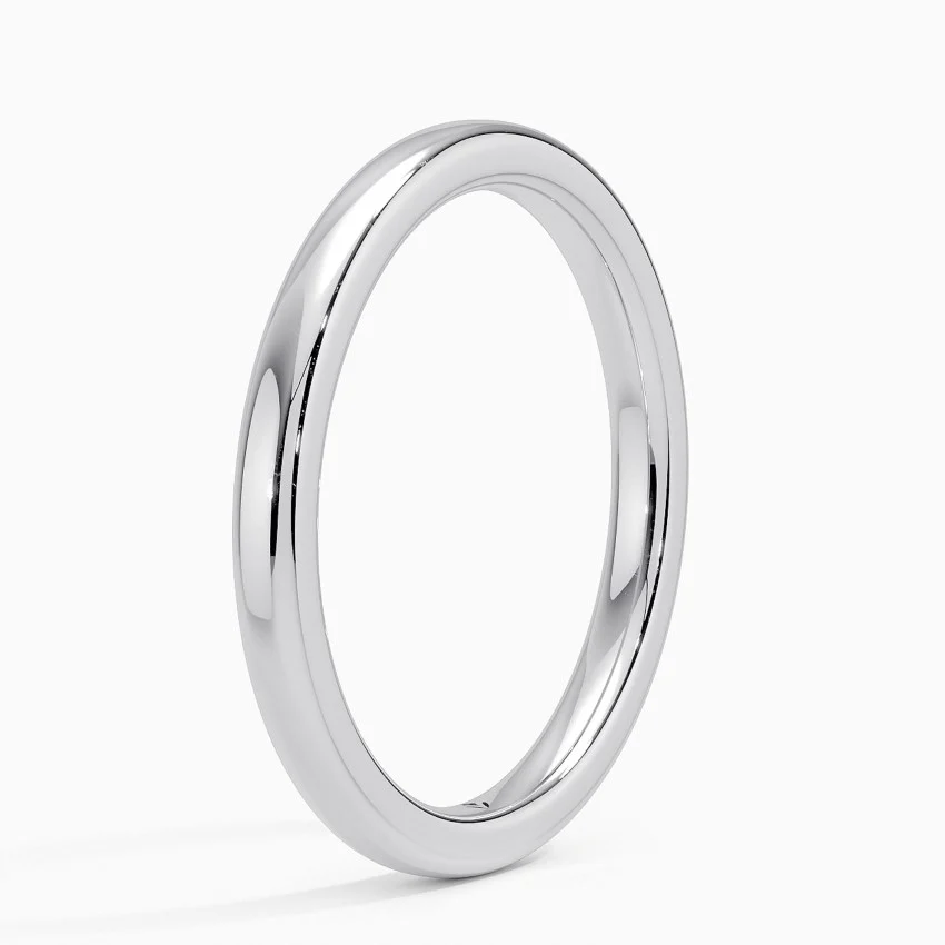 A classic choice, this delicate wedding band has a rounded inside edge for increased comfort and pairs perfectly with any engagement ring.