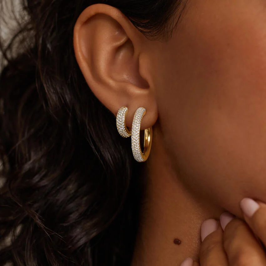 Our favorite every day statement pair, these lab diamond-adorned tube earrings are the must-have staple of every season. Classic Hoop: 25mm tall, 4mm wide.