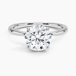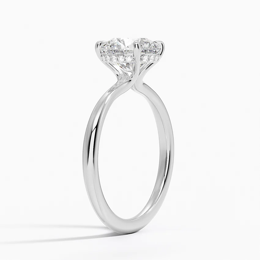 Lustrous metal flows upwards like vines reaching towards the sun in this subtly nature-inspired ring that secures the center stone in classic claw prongs. A hidden halo of diamonds adorns the gallery wire for extra sparkle.